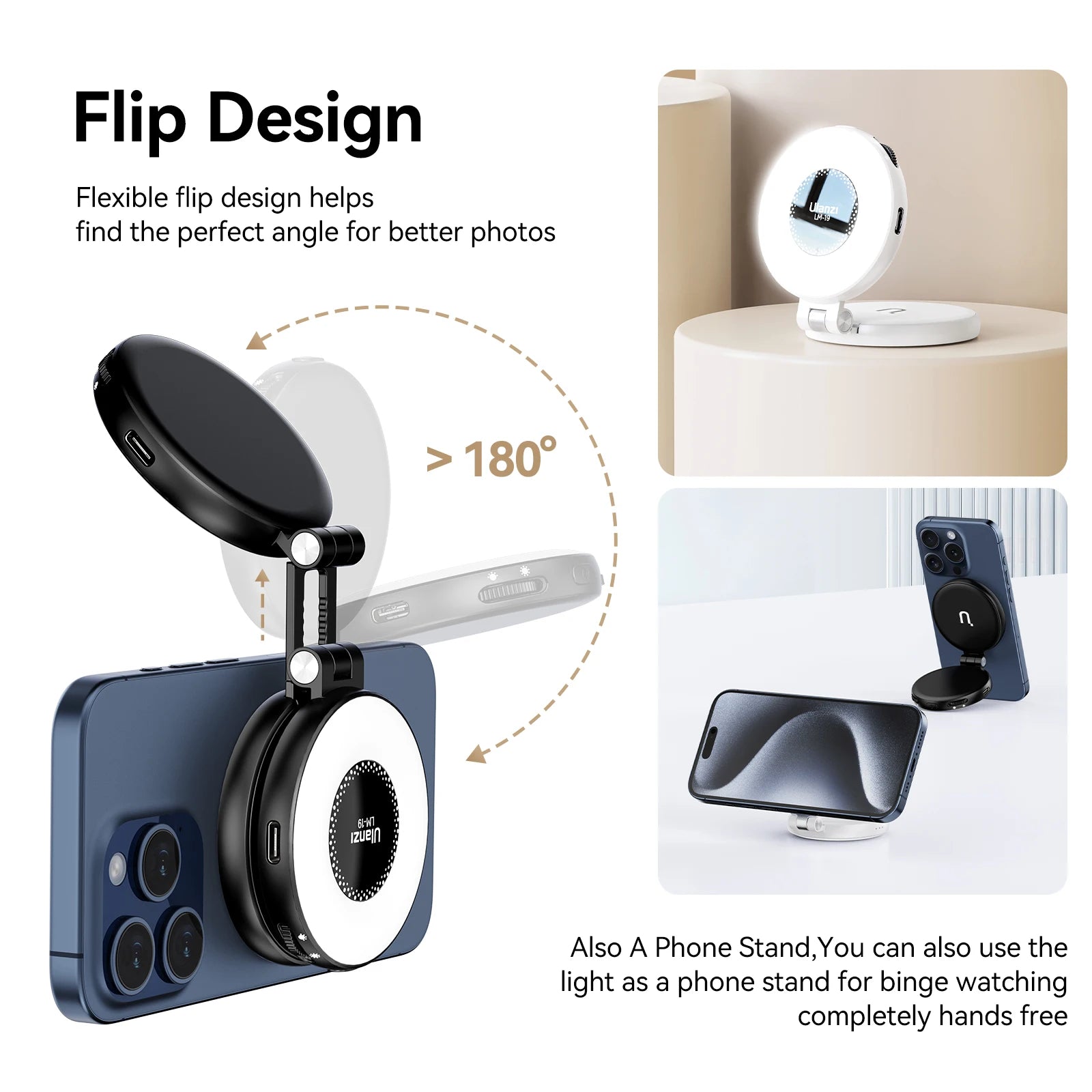 ULANZI Magnetic Selfie Light, LED Fill Light Compatible with Magsafe, LED Selfie Ring Light Included Sticky Ring for Phones, for TikTok Shooting Selfies/Photography//Zoom Calls/Video Conference Color Black